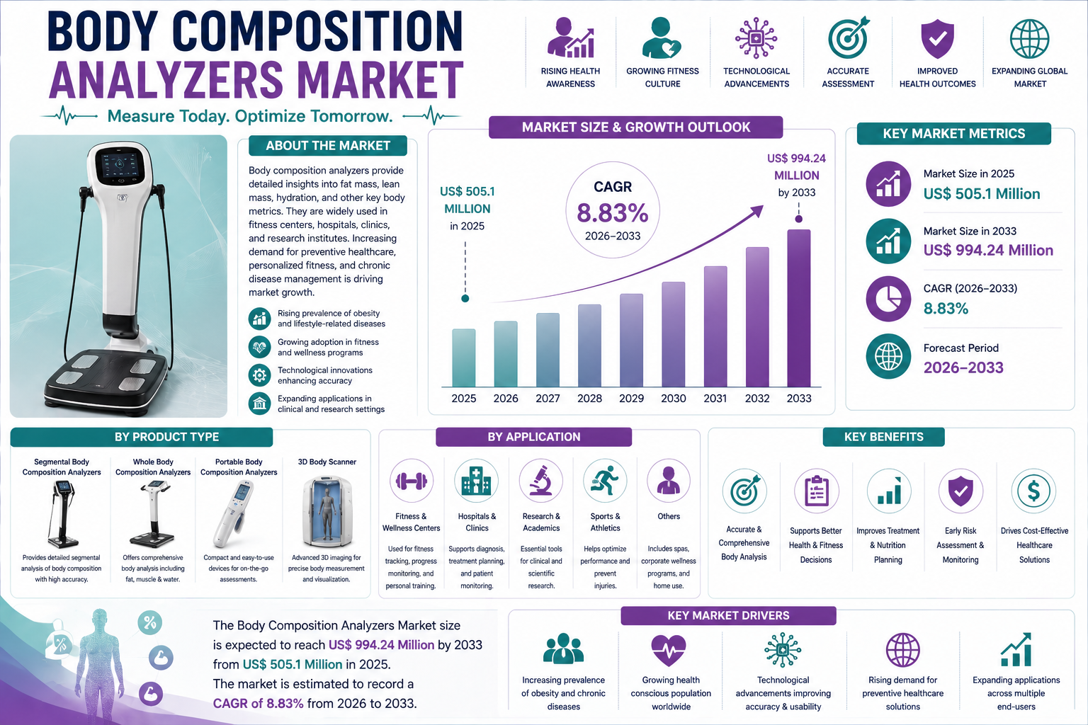 Body Composition Analyzers Market Growth Analysis 2026–2033: 8.83% CAGR Driving Value from US$ 505.1 Million to US$ 994.24 Million