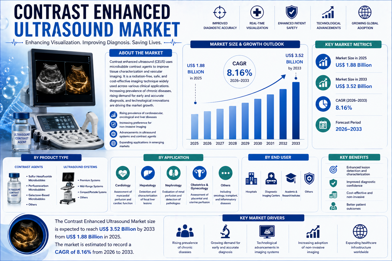 Contrast Enhanced Ultrasound Market Growth Analysis 2026–2033: 8.16% CAGR Driving Value from US$ 1.88 Billion to US$ 3.52 Billion